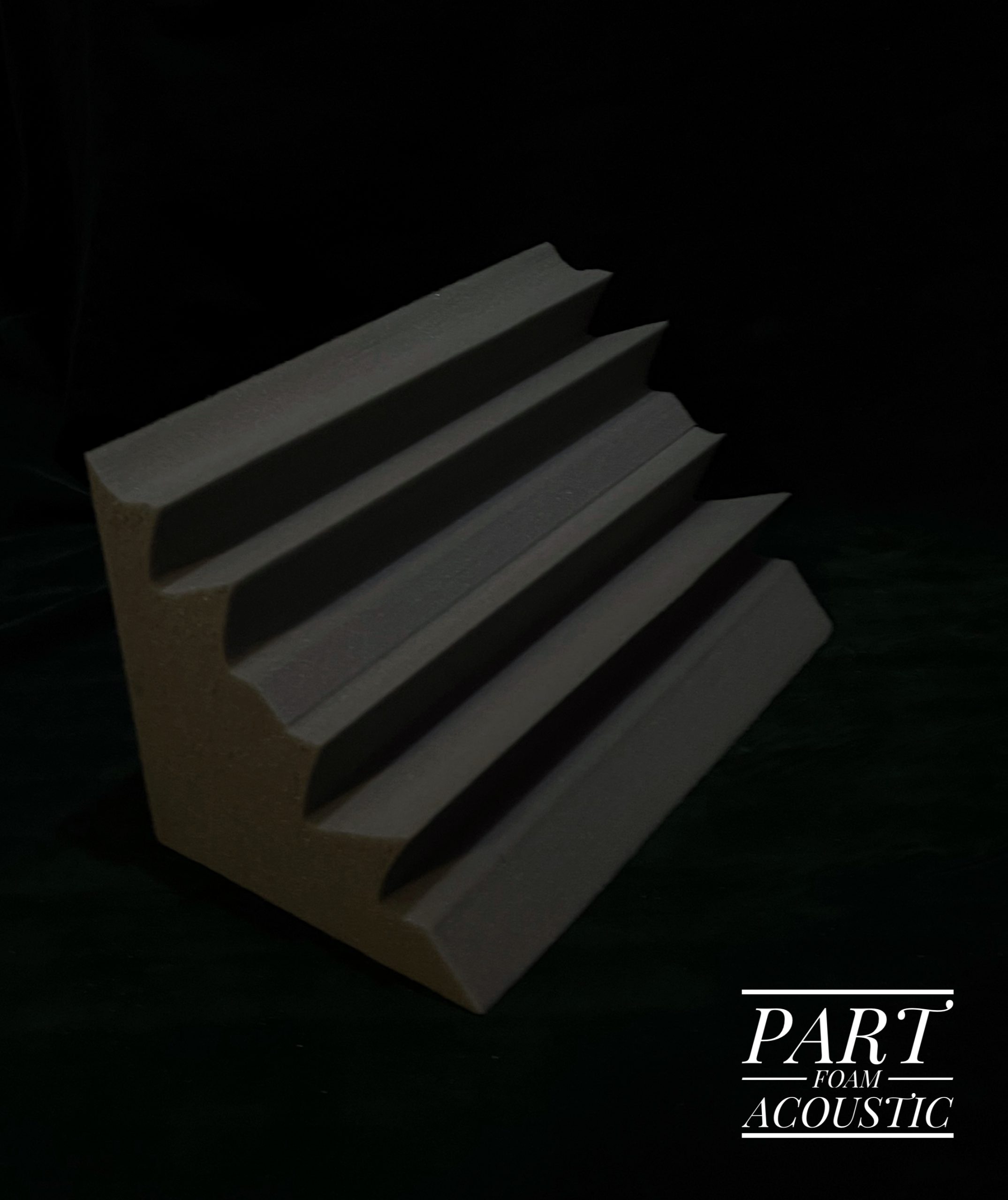 The Mini Bass Trap is a type of bass trap designed to reduce low frequencies and hum in a space. This panel is made from open-cell polyurethane foam and features a unique designed, with carve that enhance both its aesthetics and functionality. The primary difference between this panel and standard bass traps (1 meter in height) is its height, which is designed to be 50 centimeters for ease of installation in smaller spaces.